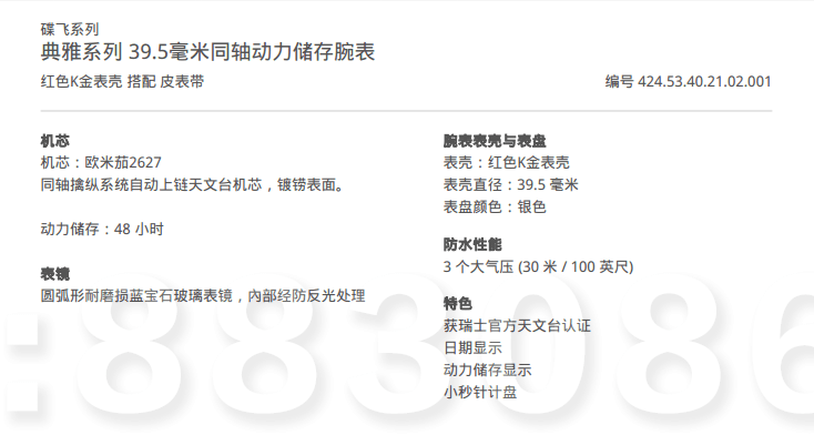 欧米茄蝶飞典雅39.5毫米同轴动力储存腕表官方正品参数