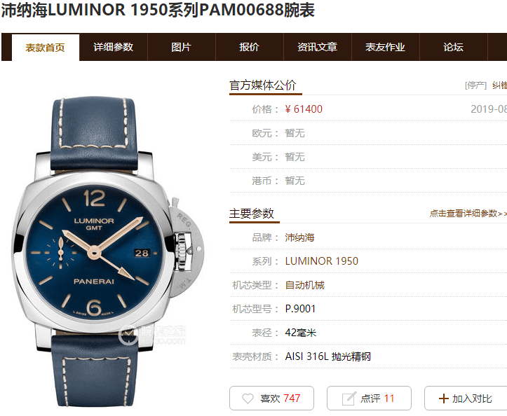 沛纳海PAM00688正品参数