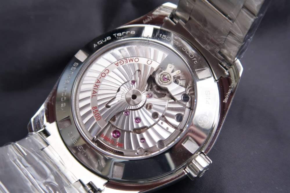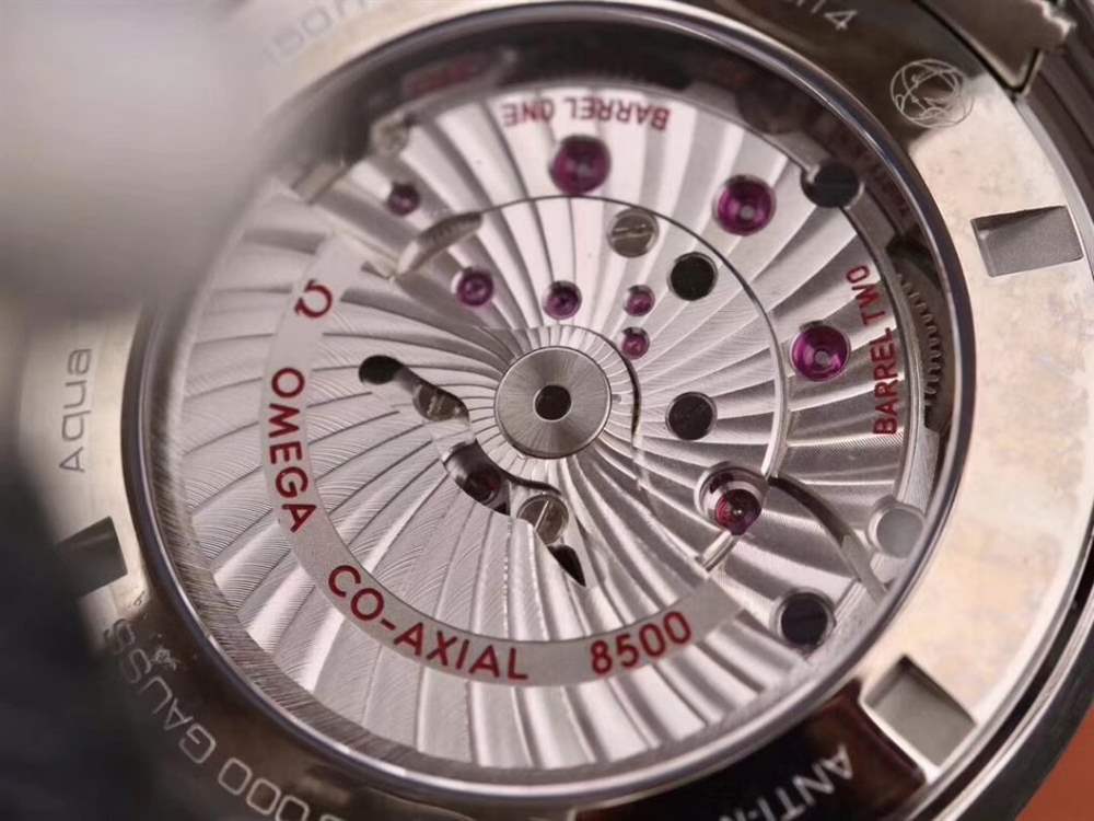 虽然说目前VS厂的8500机芯做工以功能已经完美接近正品了,但是有些技术还有所欠缺,正品搭载欧米茄Cal.8500至臻同轴机芯,与此前的同轴机芯相比,欧米茄“至臻同轴机芯”不仅通过了瑞士官方天文台认证且能够抵御超过15,000高斯的强磁场。搭载带有硅游丝的无卡度游丝摆轮和接续排列的双发条盒,双向自动上链系统可缩短上链时间。虽然VS的8500机芯已经达到了双发调盒的技术,其他技术方面目前还没有攻破。作为一款复刻产品,VS厂做的这样已经实属不易,并且这款腕表采用了透底设计,机芯的机构一览无余,看来VS厂对这款机芯还是非常有信心的。