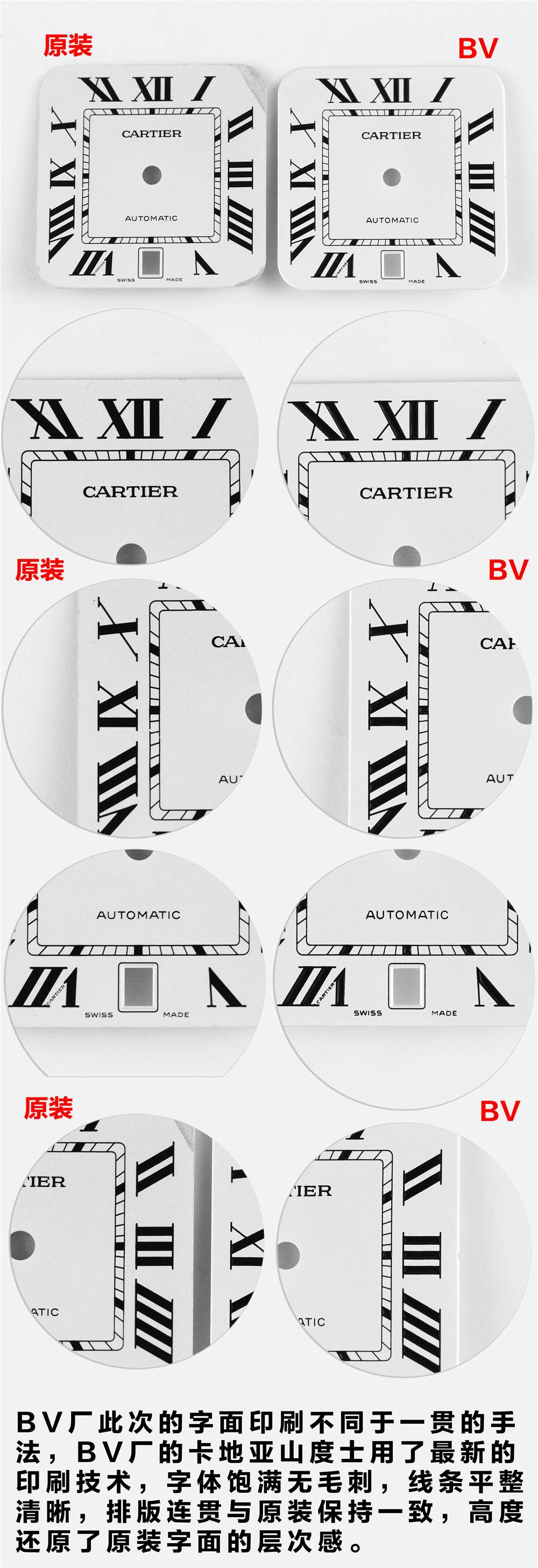 2.玻璃的砂边和表面也有非常清晰的边界,BV厂根据卡地亚的官方标准添加了瑞士抗反射白膜、抗手指纹和反弦光技术,使镜面的折射率小于1.77,几乎是透明的。非常测试厂的强度,一般厂无法达到。
