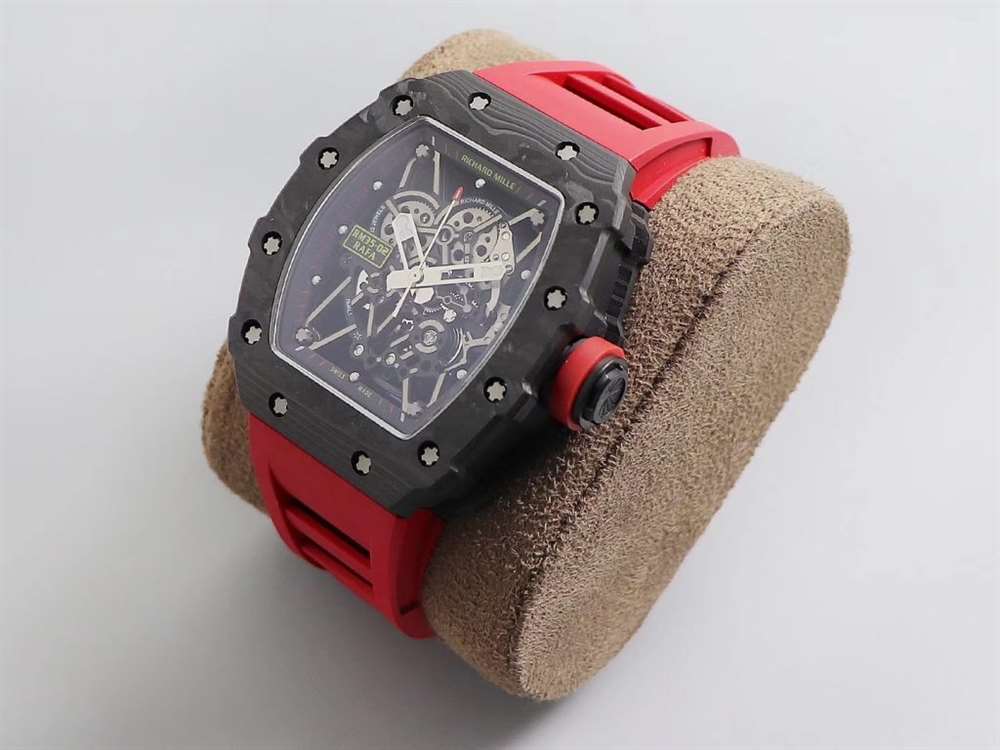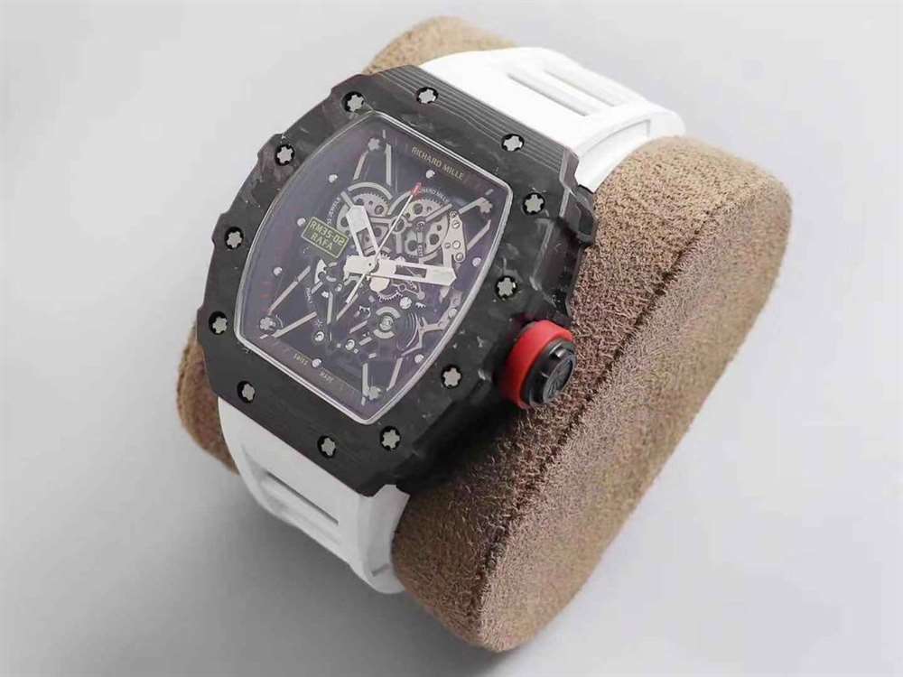 KV厂理查德米勒RM-35原纹碳纤维V3版腕表采用真正進口材料的橡膠表帶無论是細節還是手感體驗都優越有加,Logo部分已和原版100%相同。